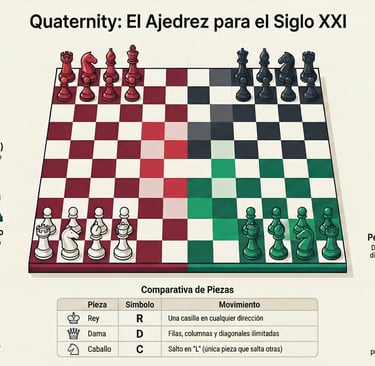 Quaternity no es solo un juego de estrategia; es un desafío de agilidad mental y visión espacial que fomenta el pensamiento crítico. En esta sección de aprendizaje, hemos sintetizado el conocimiento de nuestros libros para ofrecerte una guía estructurada. Aquí podrás estudiar las reglas fundamentales, comprender el concepto del Jaque Quaternity y practicar con ejercicios de táctica real extraídos de campeonatos oficiales.