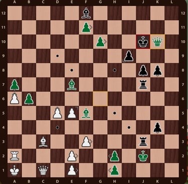 Dama negra en b10 defendida por dama verde da jaque mate al ejercito rojo.